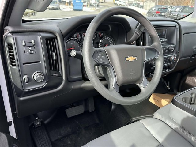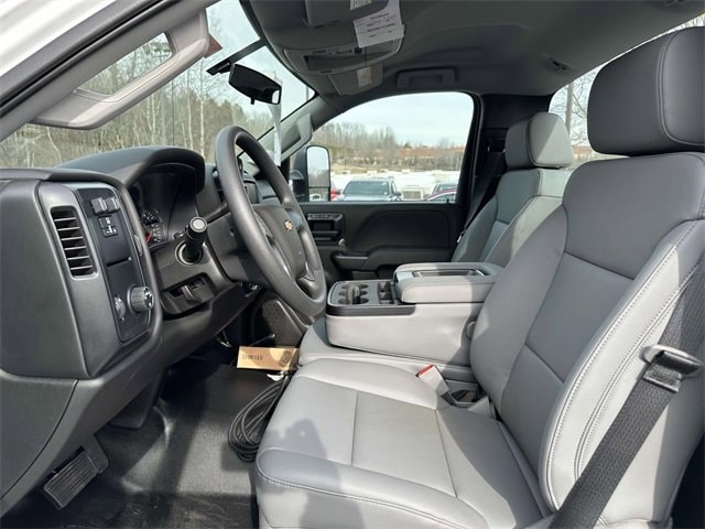 Snow Plow Prep Package (3' Auxiliary Harness For Headlamps & Turn Signals and Provision For Cab Roof Mounted Lamp/Beacon), 10-Way Power Driver's Seat Adjuster, 20 Gallons Additional Fuel, 26,000 lbs. GCWR (11,793 kg), 4.10 Rear Axle Ratio, 40/20/40 Front 3-Passenger Split Bench Seat, 63 Axle To End Of Frame, ABS brakes, Air Compressor Accessory Drive, Air Conditioning, Chevrolet Connected Access Capable, Cloth Seat Trim, Delay-off headlights, Driver door bin, Dual front impact airbags, Dual front side impact airbags, Dual rear wheels, Electronic Stability Control, Exterior Parking Camera Rear, Front Center Armrest w/Storage, Front License Plate Kit, Front reading lights, Frontal Passenger-Side Airbag Deactivation Switch, Fully automatic headlights, Occupant sensing airbag, OnStar & Chevrolet Connected Services Capable, Overhead airbag, Overhead console, Passenger cancellable airbag, Passenger door bin, Power steering, Power Take-Off Engine Control Provisions, Power Windows w/Driver Express Up & Down, Premium audio system: Chevrolet MyLink, Remote Keyless Entry, Single-Slot CD/MP3 Player, Single-Zone Air Conditioning, SiriusXM Radio, Speed control, Suspension Air Control Valve, Tachometer, Tilt steering wheel, Traction control, Trip computer, Variably intermittent wipers, Voltmeter, and Wheels: 19.5 x 6.75 Black Painted Hub Piloted Steel w/8-Holes.