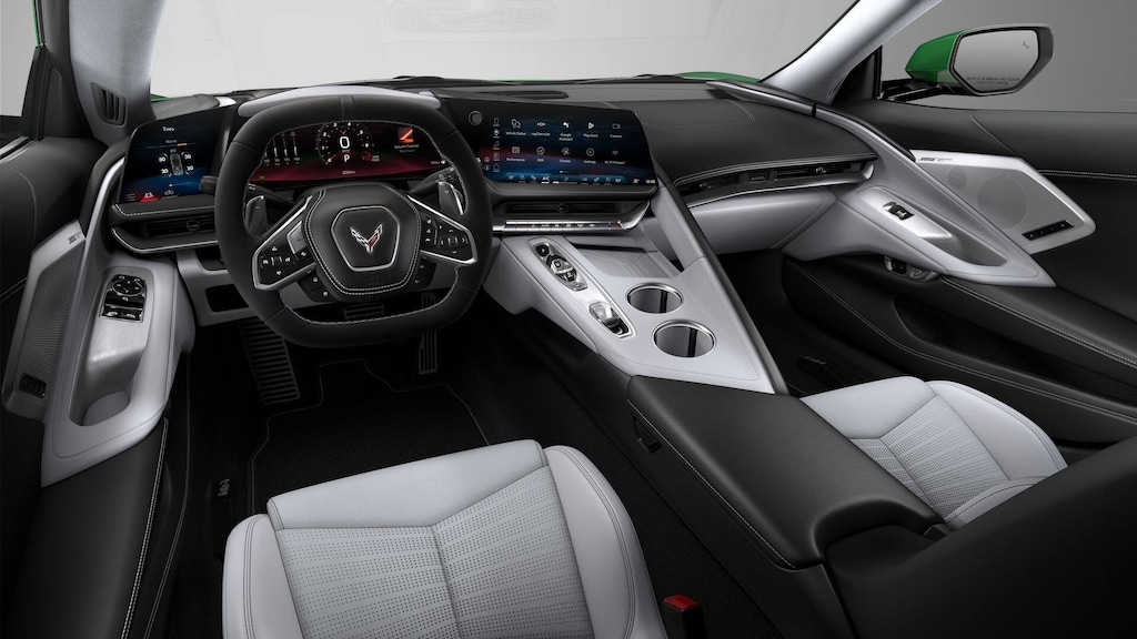 Custom Leather Wrapped Interior Package, Memory Driver and Passenger Convenience Package, Preferred Equipment Group 3LT (2 Cargo Nets, 8-Way Power Driver Seat Adjuster, 8-Way Power Passenger Seat Adjuster, Bose Performance Series Sound System with 14 Speakers, Driver Power Bolster Seat Adjuster, Electrical Theft Deterrent System, GT2 Bucket Seats, HD Front and Rear Vision Cameras, Head-Up Display, Heated and Vented Driver and Passenger Seats, Heated Steering Wheel, Passenger Power Bolster Seat Adjuster, Performance Data and Video Recorder, Power Driver Lumbar Control Seat Adjuster, Power Passenger Lumbar Control Seat Adjuster, Power-Adjustable Outside Heated Mirrors, Rear Cross Traffic Alert, Side Blind Zone Alert, Universal Home Remote, Vehicle Inclination Theft Deterrent Sensor, Vehicle Interior Movement Theft Deterrent Sensor, and Wireless Phone Charging), Sueded Microfiber-Wrapped Upper Interior Trim Package, 14 Speakers, 4-Wheel Disc Brakes, ABS brakes, Air Conditioning, Alloy wheels, AM/FM radio: SiriusXM, Auto High-beam Headlights, Auto-dimming door mirrors, Auto-dimming Rear-View mirror, Automatic temperature control, Brake assist, Bumpers: body-color, Compass, Delay-off headlights, Driver door bin, Driver vanity mirror, Dual front impact airbags, Dual front side impact airbags, Electronic Stability Control, Emergency communication system: OnStar and Chevrolet connected services capable, Exterior Parking Camera Rear, Four wheel independent suspension, Front anti-roll bar, Front Bucket Seats, Front Center Armrest, Front dual zone A/C, Front License Plate Bracket, Front reading lights, Fully automatic headlights, Garage door transmitter, Heads-Up Display, Heated door mirrors, Heated front seats, Heated steering wheel, Illuminated entry, Leather Shift Knob, Leather steering wheel, Low tire pressure warning, Memory seat, Napa Leather Seating Surfaces with Perforated Inserts, Navigation System, Occupant sensing airbag, Outside temperature display, Overhead console, Panic alarm, Passenger door bin, Passenger vanity mirror, Power door mirrors, Power driver seat, Power passenger seat, Power steering, Power windows, Premium audio system: Chevrolet Infotainment 3 Premium, Radio data system, Radio: Infotainment System with Google Built-in, Rear anti-roll bar, Rear window defroster, Remote keyless entry, Security system, Speed control, Speed-sensing steering, Sport steering wheel, Steering wheel memory, Steering wheel mounted audio controls, Sueded Microfiber-Wrapped Steering Wheel, Tachometer, Telescoping steering wheel, Tilt steering wheel, Traction control, Trip computer, Turn signal indicator mirrors, Variably intermittent wipers, Ventilated front seats, Voltmeter, and Wheels: 19 x 8.5 Front and 20 x 11 Rear 5-Split-Spoke.