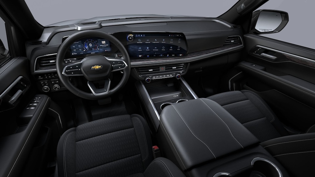 Advanced Trailering Package (Blind Zone Steering Assist with Trailering, Hitch View with Pan/Zoom Image Adjustment, and Smart Trailer Integration Indicator), All-Weather Liner Protection Package (1st and 2nd Rows All-Weather Floor Liners, 3rd Row All-Weather Floor Liners, and All-Weather Cargo Mat), Dark Essentials Package (Black Name Plates and Front and Rear Black Bowtie Emblems), Max Trailering Package (2-Speed Active Electronic AutoTrac Transfer Case, Extra Capacity Cooling System, Hill Descent Control, and Integrated Trailer Brake Controller), 4WD, Jet Blk Premium Clth Cloth, 1st and 2nd Row Color-Keyed Carpeted Floor Mats, 2-Way Power Driver Lumbar Seat Adjuster, 2-Way Power Front Passenger Lumbar Seat Adjuster, 3-Spoke Wrapped Steering Wheel, 3.23 Rear Axle Ratio, 3rd Row Manual 60/40 Split-Folding Bench Seats, 3rd row seats: split-bench, 4-Wheel Disc Brakes, 6 Speakers, 6-Speaker Audio System Feature, 6-Way Power Front Passenger Seat Adjuster, 8-Way Power Driver Seat Adjuster, ABS brakes, Air Conditioning, Alloy wheels, AM/FM radio: SiriusXM with 360L, Apple CarPlay/Android Auto, Auto High-beam Headlights, Automatic temperature control, Black Mirror Caps, Brake assist, Bumpers: body-color, Color-Keyed Carpeting Floor Covering, Compass, Delay-off headlights, Driver door bin, Driver vanity mirror, Dual front impact airbags, Dual front side impact airbags, Electronic Stability Control, Emergency communication system: OnStar and Chevrolet connected services capable, Exterior Parking Camera Rear, Floor Console with Storage Area, Four wheel independent suspension, Front anti-roll bar, Front Bucket Seats, Front Center Armrest, Front dual zone A/C, Front reading lights, Frontal Driver and Outboard Passenger Airbags, Fully automatic headlights, Heated door mirrors, Illuminated entry, Key Card, Low tire pressure warning, Navigation system: Google built-in compatibility (select service plan required, terms and limitations apply), Occupant sensing airbag, Outside temperature display, Overhead airbag, Overhead console, Panic alarm, Passenger door bin, Passenger vanity mirror, Power door mirrors, Power driver seat, Power passenger seat, Power steering, Power windows, Premium audio system: Chevrolet Infotainment 3, Premium Cloth Seat Trim, Premium Smooth Ride Suspension, Radio data system, Radio: 17.7 Diagonal Advanced Color LCD Display, Rain sensing wipers, Rear air conditioning, Rear anti-roll bar, Rear reading lights, Rear seat center armrest, Rear window defroster, Rear window wiper, Remote keyless entry, Remote Start, Security system, SiriusXM with 360L Trial Subscription, Speed control, Speed-sensing steering, Split folding rear seat, Spoiler, Steering wheel mounted audio controls, Tachometer, Telescoping steering wheel, Tilt steering wheel, Traction control, Trip computer, USB Ports, Variably intermittent wipers, Voltmeter, and Wheels: 18 x 8.5 Bright Silver Painted Aluminum.