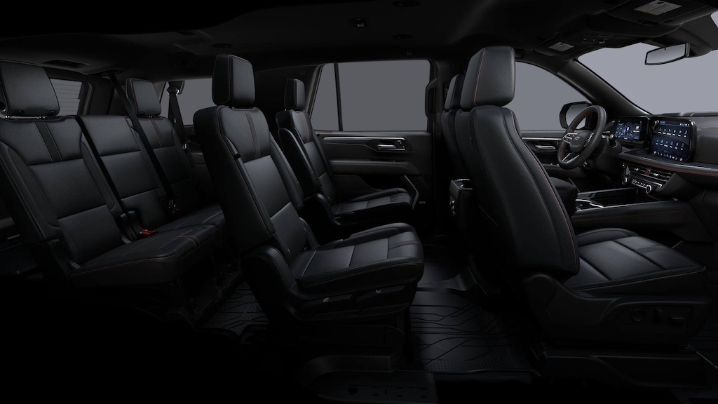 All-Weather Liner Protection Package (LPO) (1st & 2nd Rows All-Weather Floor Liners (LPO), 3rd Row All-Weather Floor Liners (LPO), and All-Weather Cargo Mat (LPO)), Comfort Package (2nd Row Pwr Release 60/40 Split-Folding Bench Seat, 3rd Row 60/40 Power-Folding Split-Bench Seat, Bose 10-Speaker Centerpoint Surround Audio Sys Ft, Heated 2nd Row Outboard Seats, Heated Steering Wheel, LED Headlamps w/LED Daytime Running Lamps, LED Tail Lamps, Memory Settings, and Outside Heated Power-Adjustable Mirrors), License Plate Front Mounting Package, Preferred Equipment Group 1SP (1st & 2nd Row Color-Keyed Carpeted Floor Mats, 3-Spoke Wrapped Steering Wheel, 3rd Row Manual 60/40 Split-Folding Bench Seats, Auto-Dimming Inside Rear-View Mirror, Bright Front & Rear Door Sill Plates, Color-Keyed Carpeting Floor Covering, Dual Exhaust System, Floor Console w/Storage Area, Front LED Fog Lamps, Frontal Driver & Outboard Passenger Airbags, Interior Camera, Key Card, Memory Settings for Driver, Rear Power Liftgate, Remote Start, RST Exterior Features, SiriusXM w/360L Trial Subscription, Universal Home Remote, USB Ports, and Wireless Phone Charging), 4WD, Red Leather, 2-Way Power Driver Lumbar Seat Adjuster, 2-Way Power Front Passenger Lumbar Seat Adjuster, 3 Years SiriusXM, 3.23 Rear Axle Ratio, 3rd row seats: split-bench, 4-Wheel Disc Brakes, 6 Speakers, 6-Speaker Audio System Feature, 8-Way Power Driver Seat Adjuster, 8-Way Power Front Passenger Seat Adjuster, ABS brakes, Air Conditioning, Alloy wheels, AM/FM radio: SiriusXM with 360L, Apple CarPlay/Android Auto, Auto High-beam Headlights, Auto-dimming Rear-View mirror, Automatic temperature control, Black Grille w/Black Bowtie Emblem (LPO), Brake assist, Bumpers: body-color, Cat-Back Performance Exhaust (LPO), Compass, Delay-off headlights, Driver door bin, Driver vanity mirror, Dual front impact airbags, Dual front side impact airbags, Electronic Stability Control, Emergency communication system: OnStar and Chevrolet connected services capable, Exterior Parking Camera Rear, Four wheel independent suspension, Front anti-roll bar, Front Bucket Seats, Front Center Armrest, Front dual zone A/C, Front fog lights, Front reading lights, Fully automatic headlights, Garage door transmitter, Heated door mirrors, Heated Driver & Front Passenger Seats, Heated front seats, Illuminated entry, Low tire pressure warning, Memory seat, Navigation system: Google built-in compatibility (select service plan required, terms and limitations apply), Occupant sensing airbag, Outside temperature display, Overhead airbag, Overhead console, Panic alarm, Passenger door bin, Passenger vanity mirror, Perforated Leather Seat Trim, Power door mirrors, Power driver seat, Power Liftgate, Power passenger seat, Power Release 2nd Row Bucket Seats, Power steering, Power windows, Premium audio system: Chevrolet Infotainment 3 Premium, Premium Smooth Ride Suspension, Radio data system, Radio: 17.7 Diagonal Advanced Color LCD Display, Rain sensing wipers, Rear air conditioning, Rear anti-roll bar, Rear reading lights, Rear seat center armrest, Rear window defroster, Rear window wiper, Remote keyless entry, Security system, Set of 4 Wheel Locks (LPO), Speed control, Speed-sensing steering, Split folding rear seat, Spoiler, Steering wheel mounted audio controls, Tachometer, Telescoping steering wheel, Tilt steering wheel, Traction control, Trip computer, Variably intermittent wipers, Voltmeter, and Wheels: 22 x 9 Bright Machined.