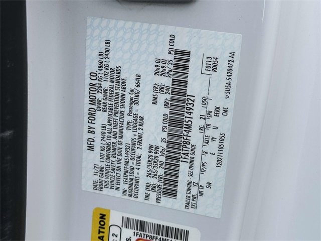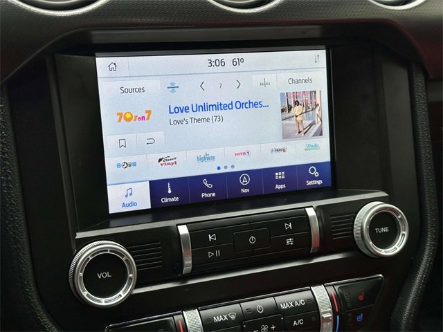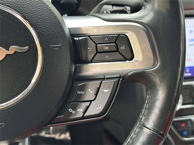 Equipment Group 401A (12" LCD Digital Instrument Cluster w/MyColor, Heated Steering Wheel, Integrated Turn Signals, Leather-Trimmed Bucket Seats w/Color Accents, and Memory Driver Seat, Mirrors & Ambient Lighting), Ford Safe & Smart Package (Adaptive Cruise Control and Voice-Activated Touch-Screen Navigation System), 4-Wheel Disc Brakes, 9 Speakers, ABS brakes, Active Valve Performance Exhaust, Air Conditioning, Alloy wheels, AM/FM radio: SiriusXM, AM/FM Stereo, Auto High-beam Headlights, Auto-dimming Rear-View mirror, Automatic temperature control, Brake assist, Bumpers: body-color, Climate Controlled Heated/Cooled Front Seats, Compass, Convertible roof lining, Delay-off headlights, Driver door bin, Driver vanity mirror, Dual front impact airbags, Dual front side impact airbags, Electronic Stability Control, Emergency communication system: 911 Assist, Exterior Parking Camera Rear, Four wheel independent suspension, Front anti-roll bar, Front Bucket Seats, Front Center Armrest, Front dual zone A/C, Front fog lights, Front reading lights, Fully automatic headlights, Garage door transmitter, Glass rear window, Heated door mirrors, Heated front seats, Illuminated entry, Knee airbag, Leather Shift Knob, Leather-Trimmed Bucket Seats, Linked Graphite Aluminum Instrument Panel, Low tire pressure warning, Occupant sensing airbag, Outside temperature display, Overhead console, Panic alarm, Passenger door bin, Passenger vanity mirror, Power convertible roof, Power door mirrors, Power driver seat, Power passenger seat, Power steering, Power windows, Premium Floor Mats w/Accent Stitch, Radio data system, Rain sensing wipers, Rear anti-roll bar, Rear window defroster, Remote keyless entry, Remote Start System, Security system, SiriusXM Radio, Speed control, Speed-sensing steering, Speed-Sensitive Wipers, Spoiler, Steering wheel mounted audio controls, SYNC 3 Communications & Entertainment System, Tachometer, Telescoping steering wheel, Tilt steering wheel, Traction control, Trip computer, Variably intermittent wipers, Ventilated front seats, Voltmeter, Wheels: 18" x 8" Machined-Face Aluminum, and Wheels: 20" x 9" Premium-Painted Aluminum.