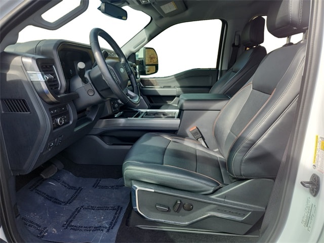 F-250 >10K GVWR Package, High Capacity 11.6" Axle Upgrade Package, Lariat Ultimate Package (4-Way Adjustable Headrests, Front Sensing System, Head-Up Display, Power-Deployable Running Boards, Radio: B&O Unleashed Sound System by Bang & Olufsen, SiriusXM Radio w/360L, SYNC 4 w/Enhanced Voice Recognition, Tailgate Step & Handle, Upfitter Switches (6), and Wireless Charging Pad), Order Code 608A, Sport Appearance Package (Black Tow Hooks, Body-Color Front & Rear Bumpers, Body-Color Mirror Caps, Chrome Exhaust Tip, Dark Painted Grille, Platform Running Boards, Sport 4x4 Box Side Decal, and Wheels: 20" Dark Carbonized Gray Painted Aluminum), Tow Technology Package (Intelligent Adaptive Cruise Control w/Stop-and-Go, Lane Keeping Assist, Pro Trailer Backup Assist, and Pro Trailer Hitch Assist), Exterior Parking Camera Rear, Fully automatic headlights, Heated front seats, Navigation system: Connected Navigation, Ventilated front seats, 4-Wheel Disc Brakes, 410 Amp Dual Alternators, 8 Speakers, ABS brakes, Adjustable pedals, Air Conditioning, All-Weather Floor Mats, Alloy wheels, AM/FM radio: SiriusXM with 360L, Auto High-beam Headlights, Auto tilt-away steering wheel, Auto-dimming Rear-View mirror, Automatic High Beam, Automatic temperature control, BLIS w/Cross-Traffic Alert, Brake assist, Bumpers: chrome, Compass, Delay-off headlights, Driver door bin, Driver vanity mirror, Dual 68 AH/65 AGM Batteries, Dual front impact airbags, Dual front side impact airbags, Electronic Stability Control, Emergency communication system: SYNC 4 911 Assist, Flow-Through Console, Front anti-roll bar, Front Bucket Seats, Front Center Armrest, Front dual zone A/C, Front fog lights, Front Leather-Trimmed 40/Console/40 Seats, Front reading lights, Garage door transmitter, Heated door mirrors, Heated rear seats, Heated steering wheel, Illuminated entry, Lane-Keeping System, Leather steering wheel, LED Roof Clearance Lights, Low tire pressure warning, Memory seat, Outside temperature display, Overhead airbag, Overhead console, Panic alarm, Passenger door bin, Passenger vanity mirror, Pedal memory, Post-Collision Braking, Power door mirrors, Power driver seat, Power passenger seat, Power steering, Power windows, Pre-Collision Assist, Radio: B&O Sound System by Bang & Olufsen, Rain sensing wipers, Rapid-Heat Supplemental Cab Heater, Rear reading lights, Rear seat center armrest, Rear step bumper, Rear window defroster, Remote keyless entry, Security system, Speed control, Split folding rear seat, Steering wheel memory, Steering wheel mounted audio controls, Tachometer, Telescoping steering wheel, Tilt steering wheel,